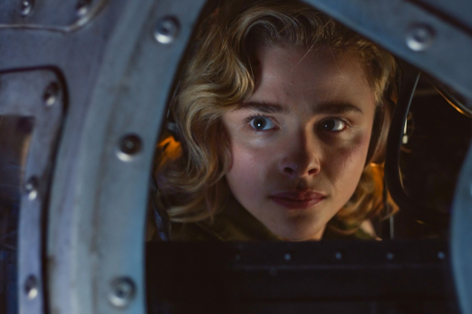 Amid World War II, Pilot Officer Maude Garrett (Moretz) is given a mission to transport a secret package across the Pacific Ocean. Her crewmates aboard the B-17 bomber that she’s been assigned to are weary of her presence and dismiss her as an incapable female; especially after she claims to see a weird creature on the side of their plane. Stowed away in one of the gun turrets, she endures endless taunts from those on the plane until Japanese fighter planes swoop in. Garrett now needs to fight off the jeers of her peers, the enemy ships, and the weird gremlin that seems interested in both tearing apart the plane piece by piece and her secret package of which she is extremely protective.